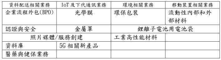 DNP的電子事業部門包括顯示元件和電子組件,以自創的核心尖端技術如精細圖案、超細蝕刻、光刻等,在汽車、智能房屋、醫療保健、環境和能源等領域提供新的價值,這些技術內容如表6。