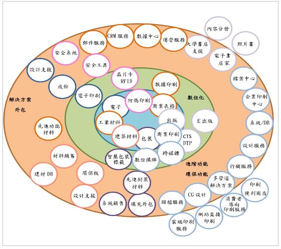 網路及雲端平台、混和印刷、個人及依需印刷服務。