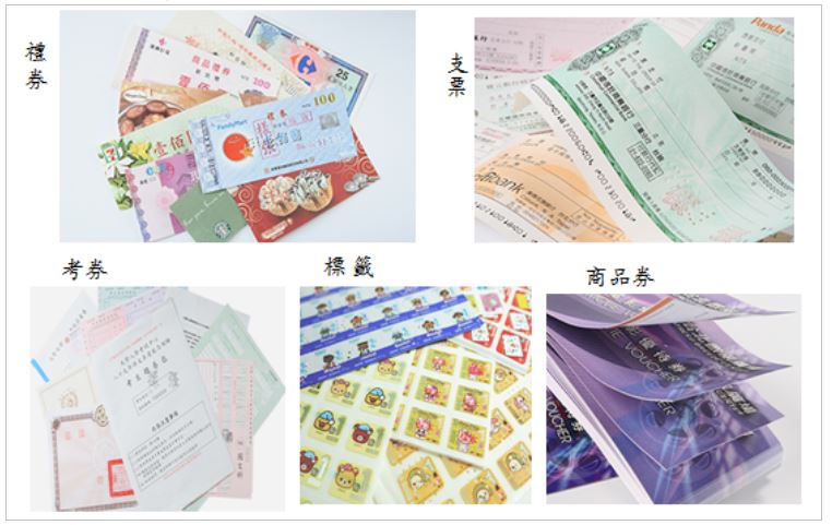 安全印務市場範圍可分為有價證券產品(圖1)包括鈔票、支票、股票、彩票、門票、車票、選票、禮券、發票、兌換券、金融存單、權證、保險單、油單、房產證、考券、准考證、身份證、駕照、護照、戶口名簿、存摺、其他證書等;標籤與標識包括品牌保護標籤(Brand protection)、防偽標籤、產品履歷標籤、防拆標籤、防偽包裝材料、車牌等;智能IC卡類產品包括ID用卡(設保、自然人憑證、市民卡、會員卡等)、金融卡片(信用卡及銀行卡)、手機SIM卡、非接觸卡(一卡通、高速公路卡ETC、移動支付NFC卡等)等;無線射頻(RFID)標籤的防偽解決方案與驗證平臺及其他防偽包裝解決方案、圖文資訊處理解決方案、檔案及文件管理、數碼防偽及資訊安全解決方案等。