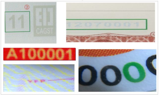 (3) 印刷防偽技術:以混和印刷制程及專精的印刷技術,可產生凹版印刷 、彩紅網底印刷、接紋印刷、正反面套印、接線印刷、多色偽印、縮微印刷技術、折光潛影、隱形圖像、圖像混擾印刷等。