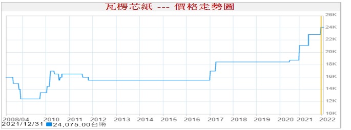 除了漿價上漲外,廢紙價格也是持續上漲,元月份的廢紙(OCC)價格持續高檔,讓台灣瓦楞紙箱再度上漲5%,累積過去一年漲幅約28.4%(表8),而漿價上漲,對100%使用漂白漿的白卡紙板及衛生紙的價格,往上調升是不可避免的趨勢。