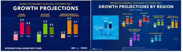 持續2020年新冠肺炎(COVID-19)對全球的衝擊,2021年全球確診數約2.04億人,約是2020年的2.4倍,確診死亡數約355萬人,約是2020的1.88倍,而2021年全年在1、4、8月共有三波確診高峰,加上去年9月開始的大魔王病毒(Omicron),第四波疫情再起,全球確診數最高峰在2022年1月19日,當日確診數高達423萬人,也讓全球確診數累積在2022年1月6日突破3億人,在2月8日突破4億人,面臨第四波疫情再起,全球各國在2021年10月再度封疆、封城,又攪亂及扭曲全球經濟復甦與生活常態。