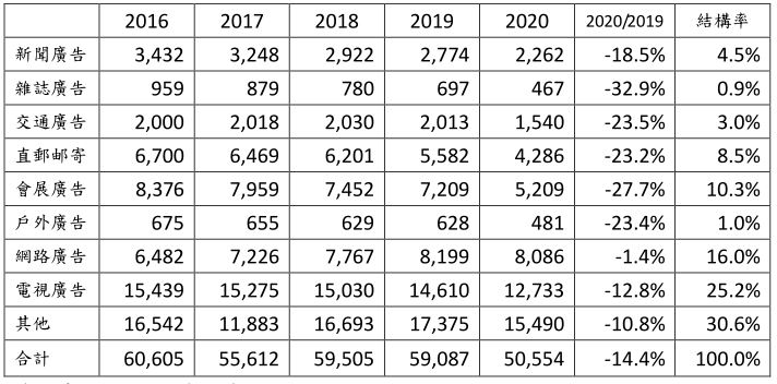 表3:2016至2020年全日本廣告支出額(單位:億日圓)